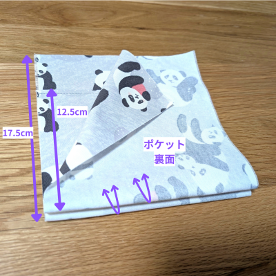 写真のようにポケット布を中表にして折りたたみます。