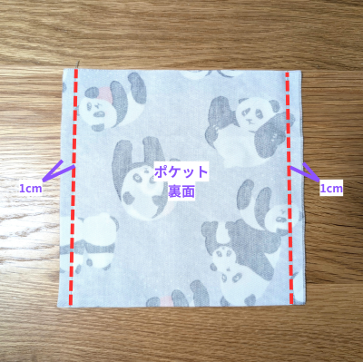 ポケットの両脇を1㎝でぬいます。
