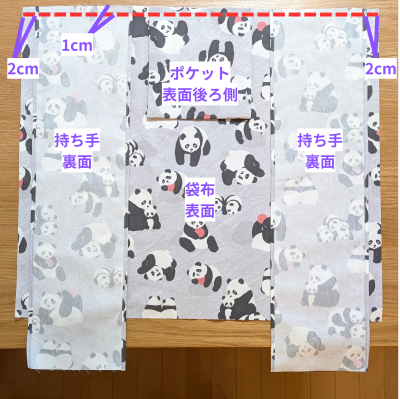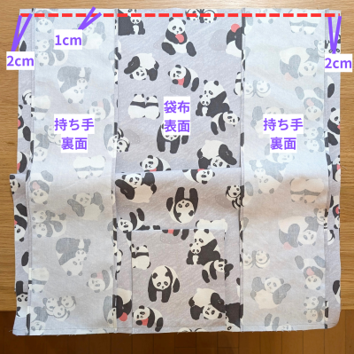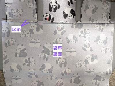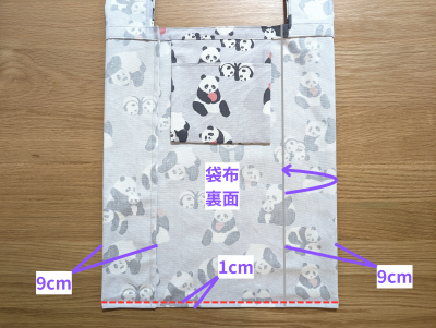 袋口1cmをアイロンで折ります。